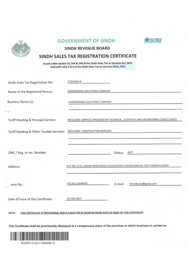 Sindh Sales Tax Registration