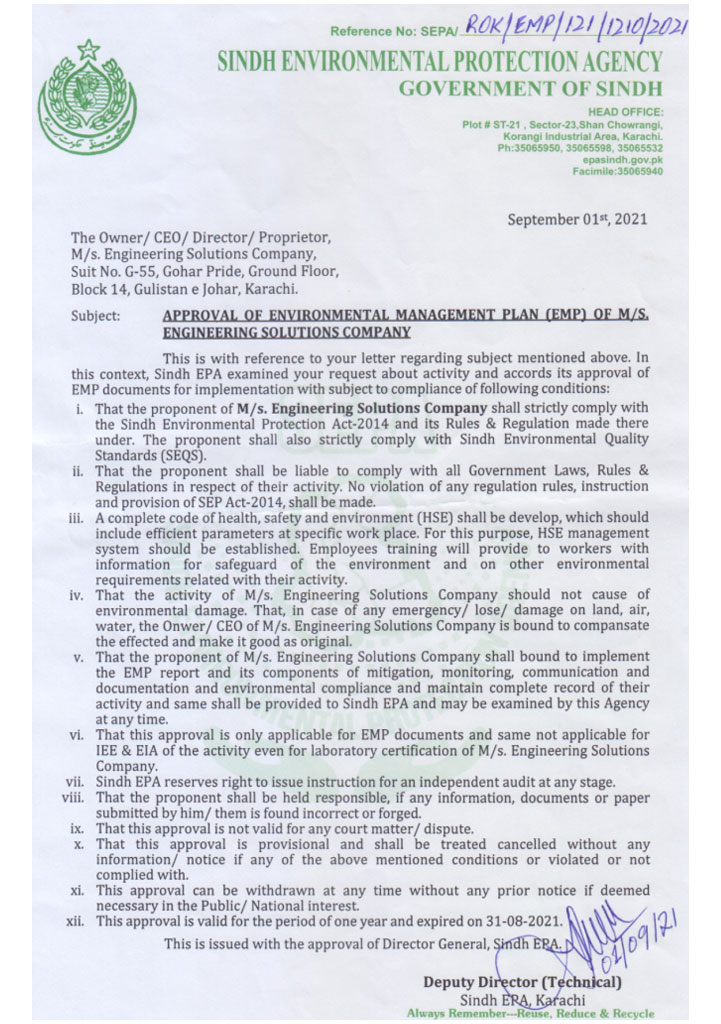 Engineering Solutions Company (ESCO) is a multidisciplinary organization providing Environmental, HSE, Calibration, Construction, and Consultancy Services to Pakistan’s major industrial sectors. With accreditations from leading international bodies, ESCO ensures technical precision, compliance, and sustainability across every project.